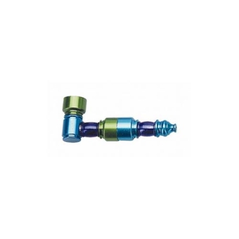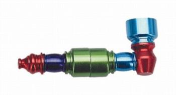 felgekleurd klein pijpje bestaand uit 5 delen, gemaakt van aluminium.