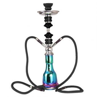 Trakteer jezelf op een verbluffende en luxueuze rookervaring met de Black Shiny Shisha, een fascinerende waterpijp die zowel qua design als prestaties indruk maakt. Deze 56 cm hoge waterpijp met twee slangen heeft een betoverend parelmoerachtig kleurenverloop met tinten van blauw en paars. Geniet van een ongeëvenaarde shisha-ervaring en laat je meeslepen door de schoonheid en het vakmanschap van deze prachtige waterpijp.