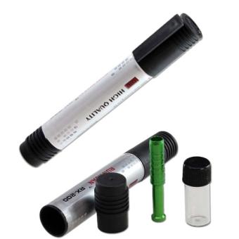 Permanent Marker Stash. Deze stash container is vermomd als een functionele 'Permanent Marker' pen. Maar binnenin zit een klein glazen potje en een snuiftube voor ultieme discretie en transport van je waardevolle spullen. Ideaal voor het verstoppen van geld en andere kleine maar waardevolle spullen. Bevat een klein glazen potje en snuifbuisje.