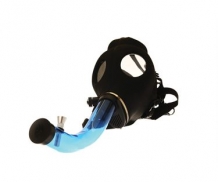 Wie deze bong heeft ontworpen moet een echte fanaat van het ultieme roken zijn geweest, deze gasmaskerbong heeft in plaats van een zuurstoftank een grote bong hangen. Het gasmasker is gemaakt van rubber, de bong is van acryl en de chullum is van metaal.