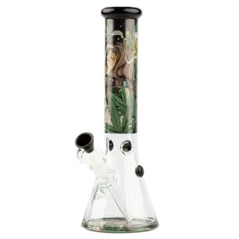 Het unieke ontwerp van deze bong is voorzien van de afbeelding 'Kissing Lady', die een romantisch koppel voorstelt dat een hartstochtelijke kus deelt. De afbeelding is prachtig geïntegreerd in het glas, waardoor een betoverend visueel effect ontstaat waardoor deze bong in elke collectie opvalt.
