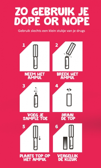 Dope or Nope testkits zijn ontzettend eenvoudig in gebruik. Volg de volgende stappen om binnen no-time achter de inhoud van jouw drugs te komen: