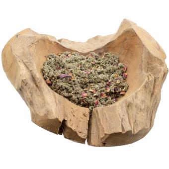 Frambozenblad, goudsbloem, red clover, citroengele honingklaver, pepermunt blad en rozenbloesem.