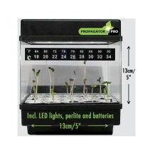 De Propagator Pro is voorzien van een thermometer, a zakje perliet en ingebouwde LED lampjes (inclusief batterijen). Je hoeft alleen nog een Spongepot toe te voegen en je hebt alles wat je nodig hebt om jouw zaadjes de lucht in te laten schieten!